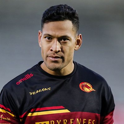 As Israel Folau looks set to make his Rugby League debut for the Catalan Dragons, we hear from Keegan Hirst, who in 2015 became the first British pro player to come out as gay. The French side attracted widespread criticism for signing the player after he was sacked by Rugby Australia for a social media post saying hell awaited gay people. With no sign in sight to the end of Coronavirus, we take a look at the effect it’s had on the sporting calendar, where a number of events across multiple sports have been postponed. We meet two of six African American Women who represent the USA in the sevens version of the game… and will be doing so in Tokyo later this year. Photo: Catalans Dragons’ Israel Folau takes part in his first training session with the club (Credit: AFP)