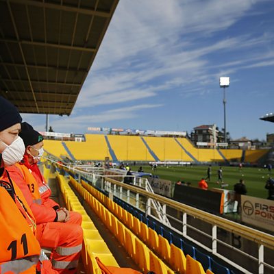 After another week of sporting event cancellations, we bring you the latest on the impact the coronavirus pandemic is having on global sport. This week we discuss the Tokyo 2020 Olympics and how Formula 1 has been effected. We take a look at how the crisis is having an impact on the NBA, where players are being tested for the virus without struggle, in stark comparison to the American public. Also this week we talk to former international New Zealand netballer Catherine Latu, who is trapped under lockdown in Italy. Together with her husband, Jimmy, who plays for Italy’s national rugby union side and their baby son Bash. We speak to Catherine about the realities of life under lockdown. Plus we hear from Fifpro on how footballers across the world are being affected and speak to Hull KR owner Neil Hudgell on the future of Rugby League. And we reflect on the new AFL season in Autsralia which got underway behind closed doors this week, with public opinion split due to the coronavirus outbreak. Photo: A man with a protective mask during the Serie A match between Parma Calcio and SPAL in Italy which was played behind closed doors (Getty Images).