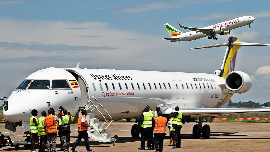 The development of aviation in Africa faces several challenges, ranging from high taxes to government mismanagement, but despite these barriers new airlines are starting and existing carriers are expanding their route network. Russell Padmore analyses the prospects for African airlines, with insights from aviation experts, like Patrick Edmond at Altair Advisory, Alan Peaford, Editor in Chief of African Aerospace Magazine and Sally Gethin, from Gethin's In Flight News. We hear if the introduction of the Single African Air Transport Market agreement will create the open skies that allowed aviation to prosper in Europe. Alan Kilavuka, the chief executive of Jambojet in Kenya, talks candidly about the challenges of operating a low cost airline in Africa. We also hear from Judith Tyson at the Overseas Development Institute how expanding aviation will help economies across the continent, by creating jobs and enhancing transport infrastructure. (Picture: Entebbe Airport Kampala. Copyright Getty Images.)