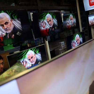 Iran vows revenge for a US strike on its top military general – we check in on what the reaction in the US has been with the BBC’s Jane O Brien in Washington, and an expert based in Riyadh to assess the wider impact across the Middle East. In the US, tech show CES kicks off again… and a cat that growls if you over-pet its ears is a favourite with attendees. And in LA, dormitory-style rooms with minimum privacy are a stepping stone away from homelessness - but do little to remedy the housing crisis, as we hear from Regan Morris in LA. (Image: Qaseem Soleimani on several TV screens. Photo by Majid Saeedi/ Getty Images)