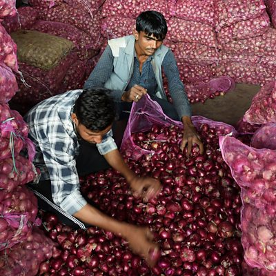An onion crop failure led to soaring prices in India where it can cause political turmoil. Vivek Singh of London's Cinnamon Club restaurant explains how significant the onion is to South Asian cuisine. Kolkata-based journalist Sandip Roy tells us that a fivefold price increase means the onion has become a valuable target for thieves. We hear from Danish Shah of produce exporting firm Sanghar Exports how the onion crisis has affected his business. And economics professor Dr Saswati Chodhhari of St Xavier's College in Kolkata discusses how onions have affected Indian politics over the years. Also in the programme, Google co-founders Larry Page and Sergei Brin are logging off as bosses of the search engine's parent company, Alphabet. BBC business editor Simon Jack tells us why the pair are stepping back. Plus as an economic crisis in Venezuela pushes millions of citizens to seek a more prosperous life abroad, our reporter heads to Peru to find out why it has become home to the second largest community of Venezuelan immigrants in the world. (Picture: Workers sort through onions in a shop warehouse. Picture credit: Getty Images.)