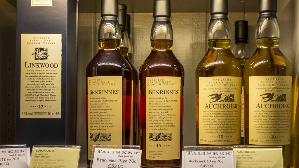 Whisky distillers from Scotland are in the United States lobbying for an end to tariffs, which were placed on their drinks as part of the transatlantic row over subsidies to aircraft manufacturers. Graeme Littlejohn, from the Scotch Whisky Association, tells us why the tariffs could do long term damage to sales in the key American market. A rare Beatles record, the first disc by the group ever played on radio is up for auction. The auctioneer tells us why the record is worth thousands and how avid collectors are driving the market for pop music memorabilia. And we investigate the economic benefits of making public transport free to all users. (Picture: Scotch Whisky on sale. Copyright Getty Images.)