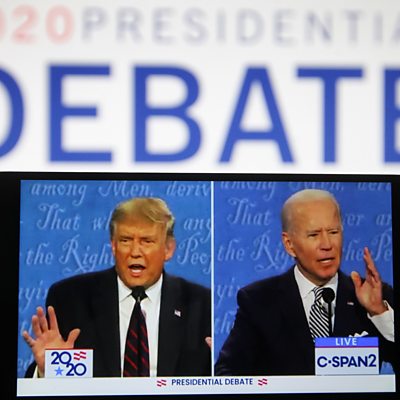 Having witnessed last night's 90 minute shouting match, Peter Spiegel, US Managing Editor of the Financial Times discusses the potential impact on the race for the White House and the debates to come. Due to the pandemic lockdown in India, many big budget films, production companies and cinemas have been looking at an uncertain future. But the government has announced that movie theatres will be allowed to run at 50% seating capacity. Sentil Kumar, founder of Qube Cinemas, a digital cinema technology company based in Chennai is feeling hopeful after a tough 6 months. As the first dieselgate trials get underway we have a special report on the scandal's impact on Volkswagen. Plus, the Bank of England's Chief Economist, Andy Haldane has blamed the media for emphasising the bad news about the coronavirus pandemic and has called for more optimism. We ask Tali Sharot, Professor of Cognitive Neuroscience and author of The Optimism Bias, whether being optimistic can make a difference. All this and more discussed with our two guests throughout the show: communications advisor Ralph Silva, in Toronto and Jeanette Rodrigues from Bloomberg in Mumbai. (Photo: President Trump and former Vice President Joe Biden at the first presidential debate in Cleveland, Ohio. Credit: Getty Images.)