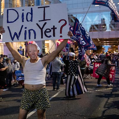 President Donald Trump has repeated the assertion that he has won the election, despite the fact that votes are still being counted. The president complained of “tremendous corruption and fraud in the mail-in ballots", without giving any evidence for his claim. Legal mail-in ballots are still being counted in four states whose results will decide the election: Arizona, Georgia, Nevada and Pennsylvania. We get the latest from the BBC's Samira Hussein in New York and Marketplace's Erika Beras in Pittsburgh, Pennsylvania. Four years ago many Pollsters incorrectly predicted that Hilary Clinton would beat Donald Trump. This time around many said a 'blue wave' would sweep Joe Biden to power. So why are the pollsters continually getting it wrong? We ask Jeff Jones, Senior Editor at Gallup, one of America's biggest polling firms. Looking at an electoral map shows that urban America is mainly democratic while the rural part of the country is generally Republican. So why does rural America support Donald Trump and the Republican party? A question for Mike Stranz of the National Farmers Union of America. All this and more discussed with our two guests throughout the show. Alexis Goldstein, an activist and a financial reform advocate based in Washington DC and Peter Morici an Economist from the University of Maryland, also in Washington. (Picture: supporters of President Donald Trump hold signs and chant slogans during a protest outside the Philadelphia Convention Center on 5 November, as election votes continue to be counted.)