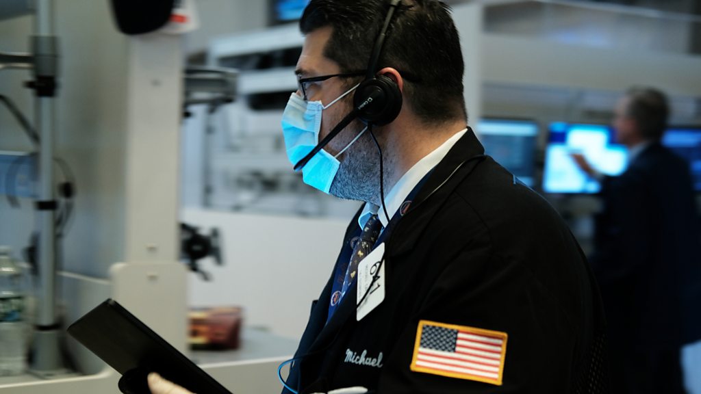 The Dow Jones and S&P 500 had their worst ever start to the year with both ending the first three months of 2020, more than 20% lower. We hear more from Joe Saluzzi at Themis Trading in New Jersey. There have been desperate scenes in India as migrant workers head for home under lockdown. In many places, the result has been transport jammed with people and luggage, which is extra perilous with the risk of a spreading virus. Those who haven't found transport have resorted to walking, in many cases as much as hundreds of kilometres. Meena Kandasamy is a writer who divides her time between London and Chennai, and argues that those in power in New Delhi seem to have forgotten about the country's huge numbers of migrant workers. Also in the programme, the BBC's Ed Butler reports on the challenges involved in calculating the proportion of those who catch coronavirus who will actually die. Plus, as figures were released revealing the extent to which people in Britain stocked up their kitchen cupboards as the country entered lockdown, we hear from Anna Caldicott of Cocotte Catering in South London, which has turned to home grocery deliveries after regular business dried up. And we talk to Paul Jackson, head teacher at Manorfield Primary School in east London, and chef Mickey Wing Chan from the Dorchester Hotel in Mayfair, who is part of a team helping provide meals to vulnerable children, and to the children of key workers who are still going to school. (Photo of New York Stock Exchange by Spencer Platt for Getty Images)