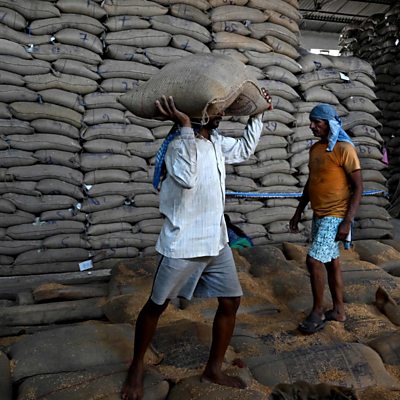 An alliance of agencies say the Covid-19 outbreak could cause widespread food insecurity. Maximo Torero is chief economist of the UN's Food and Agriculture Organisation, and discusses the impact of the pandemic on food security and food supply. We consider the potential vulnerabilities of the globalised way much of our food is produced with Professor Tim Lang of the Centre for Food Policy at City University in London. Neil Stephen of Thorneybank Farm Shop in Scotland discusses the popularity of their produce and meat vending machines that have made contact-free purchases easier. And we have a report on the growing popularity of doorstep delivery for products like milk. Also in the programme, we talk oil with Daniel Yergin, author of The Quest: Energy, Security & the Remaking of the Modern World. And Anna Nicolaou, US media correspondent for the Financial Times in New York, talks about the effect Covid 19 has had on Netflix’s financial performance. (Picture: Labourers load sacks of food grain in India. Picture credit: Getty Images.)