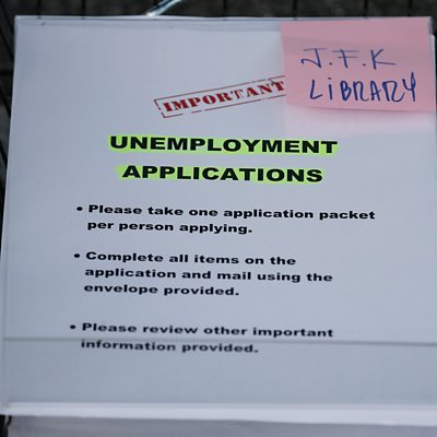 There's a warning those working informally could be hit particularly hard by coronavirus. Guy Ryder is director general of the International Labour Organisation, and explains his organisation's latest findings. The US economy contracted sharply in the first three months of the year. Our economics correspondent Andrew Walker puts the latest figures into context. The International Monetary Fund has approved a request by Nigeria for emergency financial assistance worth $3.4 billion. The BBC's Ishaq Khalid in Abuja discusses which areas of the Nigerian economy are suffering the most. We examine some of the complicated questions thrown up by Covid-19, such as what economic value should be placed on a human life, and whether it should be a factor for policy-makers, with John Broome, professor of moral philosophy at Oxford University. Plus Helena Horton of the Daily Telegraph tells us why sales of eggcups have seen a boost as a result of the coronavirus pandemic. (Picture: Information for unemployment applicants. Picture credit: Getty Images.)