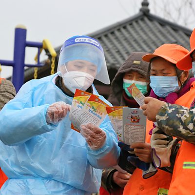 The end of China's strict Covid travel rules has come as a relief to passengers and the tourism industry - but concerns have been raised about the spread of the virus. We look at what it could all mean for the global economy. Also on the programme, a look back at 2022 in film - and why it's been The Year of the Sequel. (Picture: Health workers share leaflets with cleaners in Nantong city, Jiangsu province, China. Credit: Getty Images.)