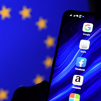 The likes of Tiktok, Meta and Google will face some of the strictest rules about how they look after our data anywhere in the world as the Digital Services Act or DSA comes into force across European nations. Firms with over 45 million users in the European will have to pay fines of up to 6 per cent of their massive global revenues should they be found to breach the new rules. Also on the programme, we discuss how Helsinki became a global mobile games capital. Will Bain is joined throughout the programme by Dr Stephanie Hare, a researcher of technology and politics and Sushma Ramachandran, an independent business journalist and columnist for The Tribune newspaper. (Photo: Logos of Google, Apple, Facebook, Amazon and Microsoft on a mobile phone with an EU flag in the background. Credit; Getty Images.)