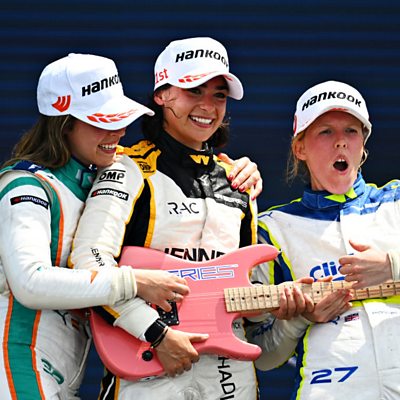 What's does the future look like for women in motorsport after the W Series ended its season early because of financial difficulties Race winner Jamie Chadwick, second placed Nerea Marti of Spain and (L) and third placed Alice Powell celebrate on the podium during race 2 of W Series at Miami International Autodrome May 2022 (Credit: Clive Mason - Formula 1/Formula 1 via Getty Images)