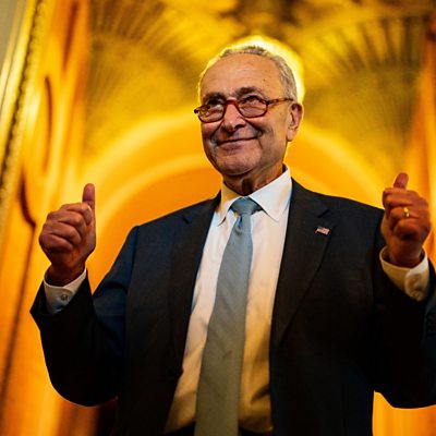 The US Senate has approved new laws aimed at tackling two major global challenges: climate change and rising prices. The Inflation Reduction Act has supporters on either side of the political spectrum, but economists claim it has some shortcomings. Bloomberg's Laura Davison tells us why it may fall short of expectations. From Illinois, Peter Jankovskis has the latest market news. Elsewhere, tensions are continuing to ramp up between the US and China over Taiwan. David Woo grew up there. He explains why - regardless of outcome - conflict isn't something people and businesses there want. We'll also hear how China is speeding up its fleet of self-driving taxis. (Picture: Democrat majority leader Chuck Schumer celebrates the passage of the IRA at the U.S. Capitol. Credit: Getty Images.)