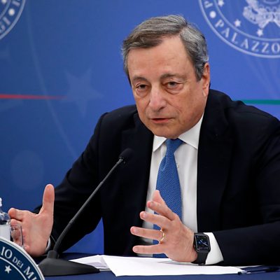 Italy's prime minister, Mario Draghi, has offered to resign after losing the support of populists. The country's markets have suffered at a crucial time for growth and recovery. So what effect will political instability have on the economy? The same question is being asked in Sri Lanka, as President Gotabaya Rajapaska formally resigns. Elsewhere, American football is big business in Africa. Could the sport's inclusion at the Olympics bring players a share of the fortune? (Image: Italian Prime Minister Mario Draghi at a press conference in Rome. Credit: Getty Images).