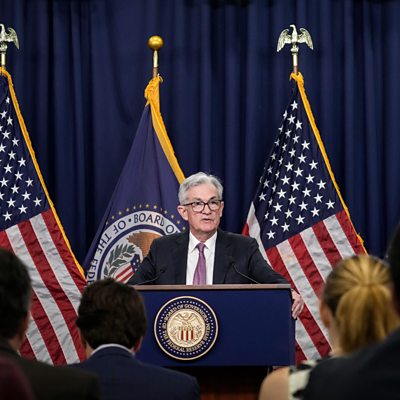 For the second month running, the US Federal Reserve has upped its interest rate. America's central bank has increased the cost of borrowing by 0.75% - the latest in a series of aggressive policy decisions against rising prices. Business owners across the country, from hospitality to farming, tell us how it will affect them. Elsewhere, Instagram has drawn criticism after bosses said it would move away from photos in favour of video content. Should they #MakeInstagramInstagramAgain? (Picture: Fed chairman Jerome Powell announces the rates hike in Washington, DC. Credit: Drew Angerer, Getty Images).