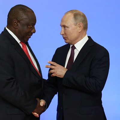 Leaders and representatives from various African countries are traveling to Eastern Europe in an effort to broker peace between Ukraine and Russia – and provide an Africa-led boost to the world’s economy. Roger Hearing is joined by ambassador Rama Yade from the Atlantic Council’s Africa Centre to discuss the visit. Foxconn, one of the biggest electronics manufacturers in the world, makes more than half of Apple’s products as well as goods for Amazon, Dell and Sony amongst others. But how is the Taiwan-based giant coping amid increasing US-China tensions? The company’s CEO Young Liu speaks to the BBC’s Karishma Vaswani. With the Fed holding US interest rates this week, and inflation apparently back within manageable limits, now America’s labour market is coming under scrutiny. (Russian President Vladimir Putin (R) greets South African President Cyril Ramaphosa (L). Archive image. Source Getty Images)