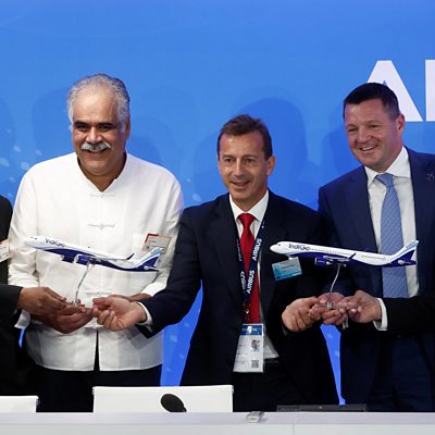 Indian carrier IndiGo has agreed to buy 500 Airbus A320 aircraft in a deal worth roughly $55bn. The agreement was announced on the first day of the Paris Airshow. Devina Gupta discusses this and more business news from around the world with Takara Small, technology journalist based in Toronto and Sergio Guzmán, director of Colombia Risk Analysis based in Bogotá. (Picture: Airbus wins record 500-plane order from India's IndiGo Credit: REUTERS/Benoit Tessier)