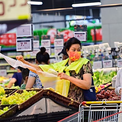 A slow comeback from Covid has added to China's economic strain, but it's bucking the trend when it comes to global inflation. As an export ban on Chinese rare minerals comes into effect, we explore the impact it could have on the global chip industry. Host Roger Hearing is joined by Fermín Koop in Argentina and Kimberly Adams from Marketplace in the US. (Picture: Customers at a supermarket in Qingzhou, Shandong province, China. Credit: Getty Images).