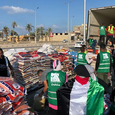 The World Health Organisation says it needs urgent safe passage to send supplies as people are 'dying unnecessarily from a lack of water and medical care'. President Biden and other world leaders have called on Egypt to open the border known as the Rafah crossing as tonnes of aid piles up. Sam Fenwick discusses this and more business news from around the world with Tony Nash, chief economist at Complete Intelligence, in Texas, and Rachel Cartland, author, writer and expert on Hong Kong. (Picture: People load a humanitarian aid convoy for the Gaza Strip, parked in Arish, Egypt, 16 October 2023.Credit: STR/EPA-EFE/REX/Shutterstock)