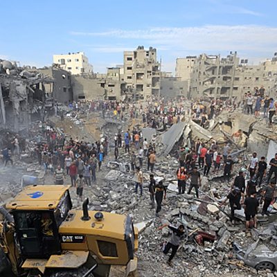 Israel's military has confirmed that its jets carried out an attack in the Jabalia area of Gaza. The IDF says the strike killed a senior Hamas commander and caused the collapse of Hamas's underground infrastructure. The Hamas-run health ministry and a hospital director say at least 50 people were killed. (Picture: GAZA CITY, GAZA - OCTOBER 31: A view from the area after Israeli airstrikes on Jabalia refugee camp in northern Gaza, on October 31, 2023. Picture credit: Getty Images).