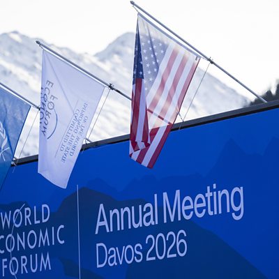 Europe has been keen to maintain a united front, threatening retaliation if Mr Trump imposes sanctions. We will bring you a Russian perspective this morning More than twenty people are dead and more than seventy are missing in a massive Pakistan mall fire. we speak to someone whose relatives were in the mall. And we hear from the West Bank where a football pitch for Palestinian children is under threat of demolition by the Israeli military. (Photo: Flags and the logo of the World Economic Forum (WEF) are pictured prior to the 56th annual meeting of the WEF in Davos; Credit: Gian Ehrenzeller/ EPA/Shutterstock)