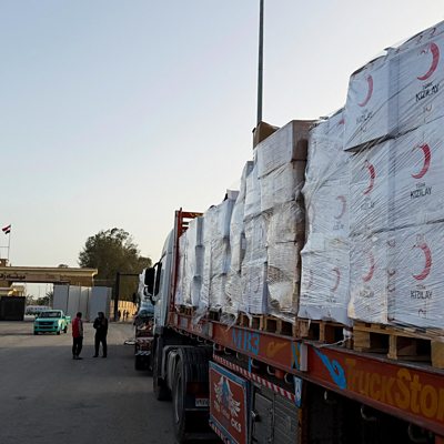Thousands of sick and wounded Palestinians are waiting to leave Gaza for treatment. Israel says only those who left during the two- year war would be allowed back in. Tensions are rising in the region as Iran's supreme leader warns that an attack on the country would sparks a wider conflict. We'll hear the view from Israel Ukrainians are bracing for the coldest day amid an energy crisis triggered by Russian attacks on the energy infrastructure. Will the so-called energy truce hold? We'll hear from our correspondent. (Photo: Trucks carrying humanitarian aid and fuel line up at the Rafah border crossing into the Gaza Strip, on the Egyptian side; Credit: Reuters)