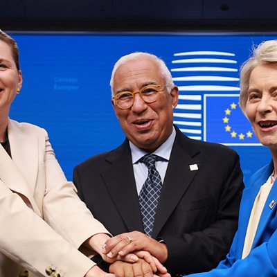 European Union leaders have agreed to loan Ukraine $100bn to cover the cost of its military and public services, but they failed to reach on a deal on using frozen Russian assets. They instead opted to secure the oan against EU borrowing rather than Russian assets. What signal does that send to Moscow? Also in the programme: We'll hear from the Ukrainian widows cut off from compensation because their soldier husbands took their own lives; excitement builds in Morocco as it prepares to host Africa's biggest football tournament; why the boxing influencer Jake Paul may be risking more than his reputation in tonight's big fight. (Photo shows Danish prime minister Mette Frederiksen, European Council president Antonio Costa, and European Commission president Ursula von der Leyen at the EU Council Summit in Brussels, Belgium on 19 December 2025. Credit: Olivier Hoslet/EPA)
