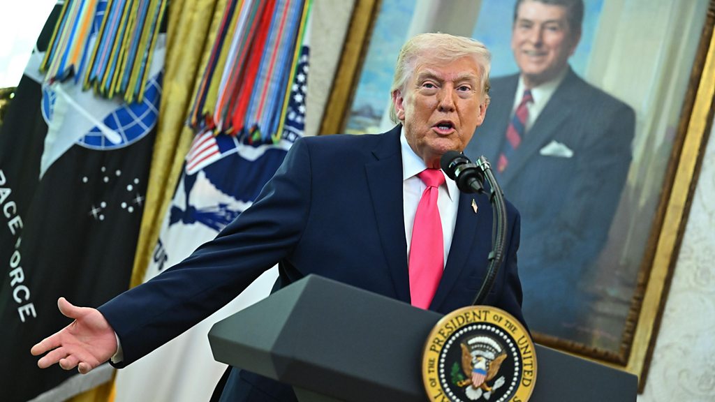 An Iranian military spokesman has accused the United States of 'negotiating with itself' over the conflict in the Middle East, amid uncertainty over the prospects of meaningful peace talks. President Donald Trump has insisted his administration is talking to the 'right people' in Iran, and that they badly wanted a deal to end the war. Also in the programme: five survivors of Jeffrey Epstein come together for the first time to speak about their ordeal; and the man who persuaded a would-be-bomber not to blow up a hospital has received one of Britain's highest honours. (Picture: US President Donald Trump speaks during a swearing-in ceremony in the Oval Office of the White House on 24 March 2026. Credit: GRAEME SLOAN/POOL/EPA/Shutterstock)