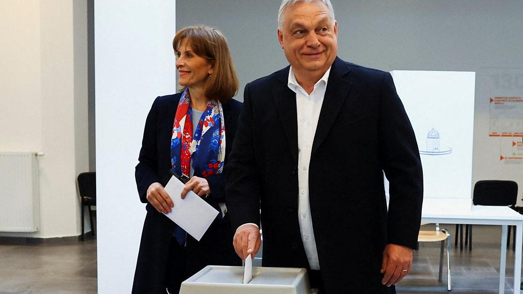 Hungarians go to the polls in a vote that could end Prime Minister Viktor Orbán’s 16 years in power, and have profound implications for the country, and wider Europe. Opposition leader Péter Magyar, who formed a grassroots party after splitting from the ruling Fidesz party, has emerged as the biggest threat to Mr Orbán’s leadership. Also in the programme: NASA has welcomed home the four Artemis II astronauts at a special reception in Houston; and we speak to two members of the legendary British rock band Deep Purple, after they met with a long-time superfan, Japan’s Prime Minister Sanae Takaichi. Presenter Julian Worricker is joined by Nina dos Santos, journalist, broadcaster and a director at the Freuds communications agency in London, and Ricardo Avelar, a journalist from El Salvador who fled the country and has been based in the UK for the past two years. (Photo: Hungarian Prime Minister Viktor Orban and his wife Aniko Levai vote during the Hungarian parliamentary election in Budapest, Hungary, April 12, 2026. Credit: Bernadett Szabo/REUTERS)