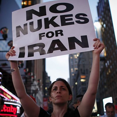 A nuclear weapon in the hands of the Ayatollahs has long been a nightmare of Iran's opponents in the Middle East and beyond. So when, in 2015, the world's big powers signed a deal with Iran that prevented it from developing a nuclear bomb it was seen as a triumph for diplomacy. But the deal has always had its critics. US hawks want to scrap it or at least bring Iran back to the negotiating table. President Trump is listening, calling the deal 'an embarrassment' and 'the worst deal ever'. On Newshour Extra, Owen Bennett Jones and a panel of guests discuss the deal's faults and merits, and explore whether or not it has made the world a safer place. (Photo of an opponent of the Iran nuclear deal by Kena Betancur/AFP/Getty Images)