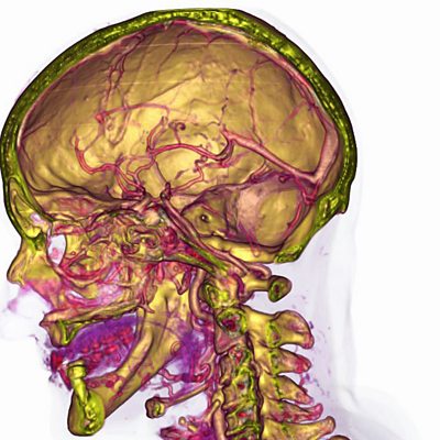 1983 saw a major breakthrough in the treatment of facial deformities. When the first three-dimensional reconstruction of a human head using CT scans was presented to the medical world. The images allowed plastic surgeons a far more precise way of planning surgical procedures. Farhana Haider has been speaking to radiologist Dr Michael Vannier who invented the 3D imaging technique which has revolutionised medicine. Photo: Three-dimensional CT scan of a male skull and arterial system. Credit SPL