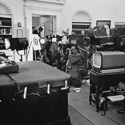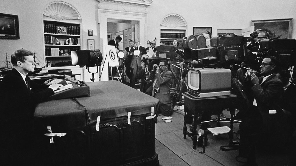 On October 16th 1962 the American president, John F Kennedy, received news that the Soviets were secretly deploying nuclear missiles on the island of Cuba. In the two weeks that followed, the Cuban Missile crisis took the world to the brink of nuclear war. Louise Hidalgo has been listening back through the BBC's archives to some of those at the centre of the crisis in Washington and Moscow. Picture: President Kennedy goes on national television to tell the American public about the Soviet nuclear missile deployment and announces a strategic blockade of Cuba, 22nd October 1962 (Credit: Keystone/Getty Images)