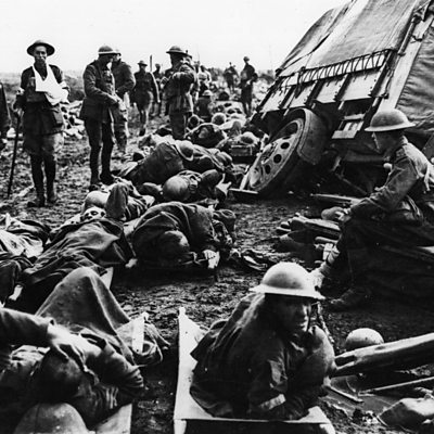 In BBC archive recordings, veterans tell the story of how medical care dealt with the horrors of WW1. Photo: Australian wounded on the Menin Road on the Western Front, 1917 (Photo by Hulton Archive/Getty Images)