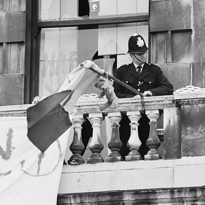 A group of hippies known as the London Street Commune occupied a sixty-room mansion in central London in September 1969. 144 Piccadilly became a flash point for the conflict between alternative culture and the mainstream – and it was later cleared by the police. Lucy Burns speaks to Richie Gardener, who was one of the squatters. Picture credit: A policeman removes a flag from the balcony of 144 Piccadilly as squatters are evicted from the building, London, 21st September 1969. (Photo by Terry Disney/Daily Express/Hulton Archive/Getty Images)
