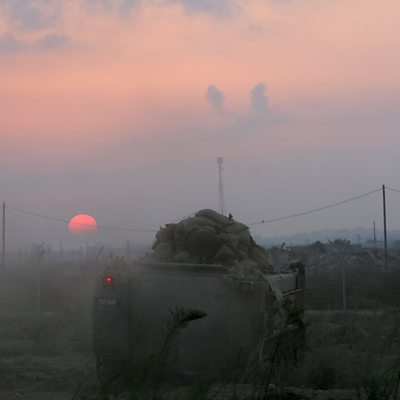 For five years Maisoon Bashir and her family lived on the front-line of the Israeli occupation of the Gaza Strip. Their house was directly opposite one of the Jewish settlements built by Israel after it captured the tiny heavily-populated territory from Egypt in the Six Day war in October 1967. Israeli troops occupied the top floors of Maisoon’s house, using it as a military look-out post, while Maisoon and her family continued living in the rooms below. They finally re-gained possession of their home when Israel withdrew from Gaza in September 2005. Maisoon tells Mike Lanchin about living with soldiers in her own home. Photo: An Israeli armored personnel carrier deploys at sunrise to protect the evacuation of the Gaza Strip Jewish settlement of Kfar Darom (David Silverman/Getty Images).