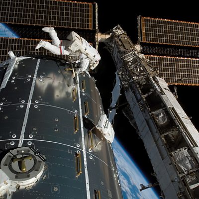 The Trump administration is reportedly devising plans to privatise the International Space Station. If this goes ahead what might it mean for the international collaboration on the exploration of space? Click talks with Kate Arkless Gray. Scientists at the Max Planck Institute for Intelligent Systems have invented a magnetically controlled soft robot only four millimetres in size that can walk, crawl or roll through uneven terrain, carry cargo, climb onto the water surface, and even swim in it. Click talks to Professor Metin Sitti, Director of the Physical Intelligence Department at the Max Planck Institute, about the future use of millirobots in medicine – in delivering drugs and targeting cancerous cells. HoloLens is aiding surgeons in theatres as they carry out operations on legs. Click talks to Philip Pratt about how augmented reality helps surgeons “see through” tissue to reconnect blood vessels. Click hears from the musician Bioni Samp about his technology that enables him to mimic and amplify the sound of bees. Bioni Samp translates bee behaviours and sounds into electronic music to help raise awareness of the ecological issues threatening them. (Photo caption: This digital still (2008) camera's wide shot affords a panoramic view of STS-122's final leg of work on the International Space Station – Credit: Nasa) Producer: Colin Grant