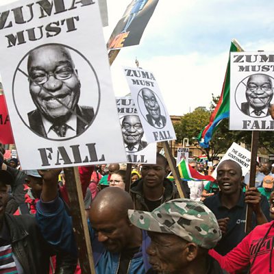 Pascale Harter introduces tales of disillusion, discontent and distrust from correspondents all over the world. In South Africa, as the ANC meets to choose a successor to President Jacob Zuma, Andrew Harding considers where the Rainbow Nation can go next - and whether its undoubted strengths can overcome the serious challenges ahead. Alexa Dvorson meets some of the people trying to analyse - and survive - a quiet crisis of mental health in Bhutan. This small, mountainous, traditional country is known globally for its policy of trying to maximise "Gross National Happiness" - but it turns out that social ills, including suicide, are on the rise. Tim Hartley mingles with the football fans on the terraces of Hong Kong, to hear why match-day protests have become so worrying to Beijing. Mainland laws on respecting China's national anthem have been extended to the Special Administrative Region - but some Hong Kong residents insist they still have the right to turn their backs or remain seated when it's played. And Joanna Robertson is on the streets and piazzas of Rome - full of beauty at this time of year, but not necessarily much goodwill. Recent Mafia trials in the city revealed many local services had been captured by criminal groups - and the turf wars even extended to a famous Christmas market. Photo: Opposition activists gather in Pretoria, on April 7, 2017 calling for the ousting of President Jacob Zuma. (Brent Stirton/Getty Images)