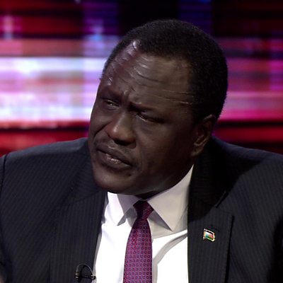Who or what can deliver South Sudan's people from despair? Its first six and half years as an independent country have been an unmitigated disaster. A brutal civil conflict, a broken economy, famine and epic levels of corruption - on any and every measure the world’s newest country is failing. This comes despite some of the largest oil reserves in sub-Saharan Africa. HARDtalk's Stephen Sackur speaks to South Sudan's Minister of Petroleum, Ezekiel Lol Gatkuoth. Image: Ezekiel Lol Gatkuoth (Credit: BBC)