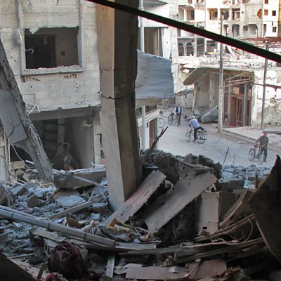 Dr Dr Amani Ballour works as the director of the main hospital in a besieged suburb of the Syrian capital, Damascus. She tells Outlook's Shaimaa Khalil about her life as a medic in a conflict zone. Wes Modes has spent the last few summers sailing along the great rivers of north America, collecting stories from the people who live on their banks. Wes travels in his homemade houseboat - or shanty boat - called Dotty. He tells Outlook's Mariana Des Forges why he first wanted to go out onto the water. Badiucao is one of China's most prolific and provocative political cartoonists. Much of his work champions human rights causes, for instance this year he drew a mural of his icon, the late activist Liu Xiaobo, just days before his death. Badiucao takes great pains to protect his identity, using an alias and wearing a mask at public exhibitions of his work. He tells Shaimaa Khalil why he became an artist, and the cost of keeping his personal life so secret. (Photo: Man standing in wreckage of a bombed building in Eastern Ghouta. Credit: Hamza al-Ajweh/AFP)