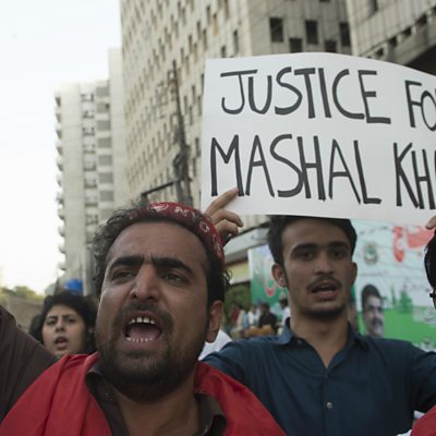 Mashal Khan had been wrongly accused of blasphemy, his father is now fighting for justice. Mashal Khan was a star student at university in northern Pakistan, and was known for his liberal views and for being outspoken. But then, rumours that he'd made blasphemous statements began to emerge, a serious and potentially dangerous allegation. The rumours soon led to violence, and Mashal was attacked and killed by a mob at his student residence. Now his father Muhammad Iqbal is campaigning for justice, and is campaigning against religious extremism. In Uganda, it's not that common to keep dogs as pets, instead they tend to guard things and are therefore are feared and distrusted. Francis Okello is trying to get his compatriots to see them in a more positive light. He recently set up the country's first ever therapy dog programme - to help people manage post-traumatic stress disorder. The Fundamentalist Church of Jesus Christ of Latter Day Saints is a breakaway sect of the Mormon church in the USA. It's led by a man called Warren Jeffs, considered by his followers to be a prophet. Everything he says goes. Even when those things are illegal, immoral or both. Warren's daughter Rachel was one of those under his control, but she managed to get away. Image: Mashal Khan protest Credit: ASIF HASSAN/AFP/Getty Images