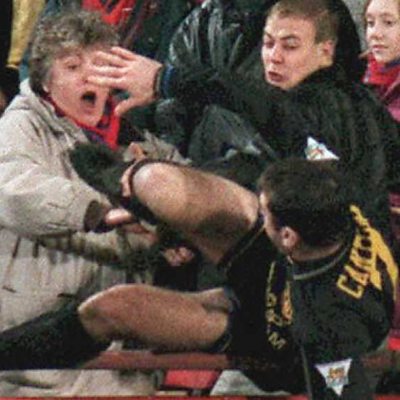 In January 1995, the French forward Eric Cantona shocked football by attacking an opposition fan during a match between Manchester United and Crystal Palace. Cantona faced a court case and was banned for nine months. Simon Watts tells the story of his Kung-Fu kick through BBC interviews with people who were there. PHOTO: The Cantona Kung-Fu kick (AFP/Getty Images)