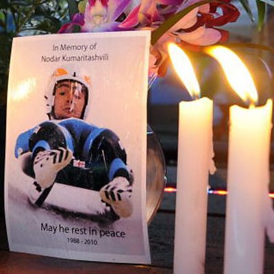 Just hours before the Vancouver Olympics opened in 2010, a young luge athlete from Georgia, Nodar Kumaritashvili, was killed when he crashed in training. Many critics said the sliding track was too fast and too difficult. Modifications to the track were made to make it safer and the competition went ahead, but the episode cast a shadow over the games and shocked the luging community. Rebecca Kesby spoke to Nodar's father, Davit Kumaritashvili. Photo: Candles and flowers left as a tribute to Nodar Kumaritashvili, Vancouver 2010. (Getty Images)