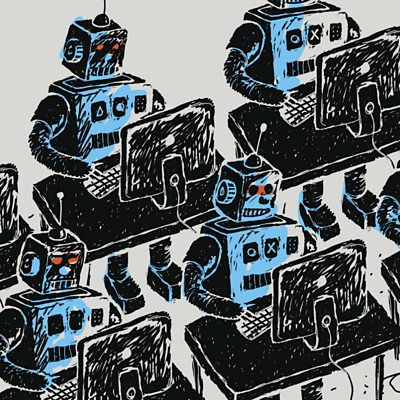 Researchers say the misuse of artificial intelligence is already happening. Haydn Belfield from Cambridge University's Centre for the Study of Existential Risk tells us how. AirBnB reveals plans to introduce a tier of more professional, upmarket properties, so is it now firmly part of the hospitality industry? And "cyber-spy hunter" Dmitri Alperovich, who revealed Russian hacking of the US Democratic Party, says his main worry right now is North Korea's cyber activity. Presented by Rory Cellan-Jones, with BBC tech reporter Jane Wakefield and Rowland Manthorpe from Wired UK. (Image: Drawing of lines of scary robots using computers, Credit: Getty Images).