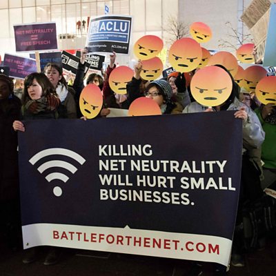 The "father of the Web" Sir Tim Berners-Lee says people should protest on the streets for the principle of net neutrality, in which all internet traffic is treated equally. Plus, after another embarrassing incident in which YouTube placed adverts next to controversial videos, are advertisers closer to losing patience with Google? We ask Johnny Hornby, founding partner of The&Partnership agency. And, we ask the businessman and investor Sunil Wadhwani why he wants to use artificial intelligence to tackle India's social problems. Presented by Rory Cellan-Jones, with BBC tech reporter Jane Wakefield, and special guest Kayleigh Bateman, head of digital content at the WeAreTheCity website. (Image: Protesters at a net neutrality rally in Boston, Massachusetts, in December 2017, Credit: RYAN MCBRIDE/ AFP/ Getty Images).