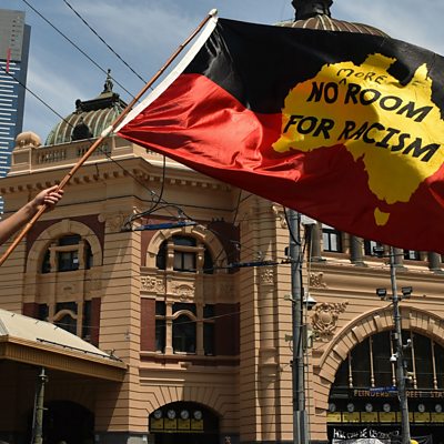 This week on The Cultural Frontline, as a debate about the colonial legacy of Australia Day divides the country, we hear from two Australian musicians, Sharon Carpenter and Jacinta Nampijinpa Price, about what the day means to them. The award winning French-Moroccan novelist Leila Slimani discusses her new role as President Macron's champion of French culture and language. The Russian drama Loveless was nominated for best foreign language film in this week's Oscars announcement, the film's director Andrey Zvyagintsev reveals what inspired him to make the film. Plus the composer Anoushka Shankar shares the story of a special moment that shaped the way she thinks about music, her father Ravi Shankhar’s Concert for Bangladesh. Presented by Tina Daheley. (Photo: A protester waves a flag during an 'Invasion Day' rally on Australia Day in Melbourne calling for equal rights for indigenous people and for an end to the celebration of Australia Day on January 26th Photo credit: PETER PARKS/AFP/Getty Images)