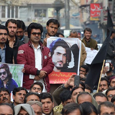 The killing by Karachi police of a Pashtun man they claimed had terrorist links triggered a nationwide protest by Pakistani Pashtuns. Adil Shahzeb of BBC Urdu reported on the Pashtun Long March, and explains the grievances within Pashtun communities. Year of the Dog Chinese New Year brings a changeover from Rooster to Dog. What does it mean to be born in the Year of the Dog, and what place do dogs have in other cultures? Answers from BBC Russian's Pavel Aksenov, Issariya Praithongyaem from BBC Thai, Luiza Khudaykulova of BBC Uzbek, BBC Mundo's Lourdes Heredia and Yuwen Wu from BBC Chinese. Turkey's Great Village Repatriation project The Turkish Agriculture Minister recently offered livestock and other incentives to rural migrants who return to their villages. Food prices are rising, and the government wants former farmers to go back to their fields. Özge Özdemir of BBC Turkish tells us more. Love at the BBC World Service In the week dedicated to love around the world, we hear what it's like to see each other on the Fifth Floor as well as at home. Kathy Harcombe from BBC Africa and Salim Kikeke of the Swahili service met and fell in love at the BBC. As did World Service Social Affairs correspondent Valeria Perasso and Alejandro Millan of BBC Mundo. In praise of Nigerian literature Last month a French journalist asked Nigerian writer Chimamanda Ngozie Adichie if there were bookshops in Nigeria. Two people who know more about the richness of the country's bookshops - and literature - are the BBC's Bara'atu Ibrahim and Abigail Ony Nwaohuocha. Image: Pakistani protesters gather over the killing of 23-year-old model Naqeebullah Mehsud Credit: Banaras Khan/AFP/Getty Images