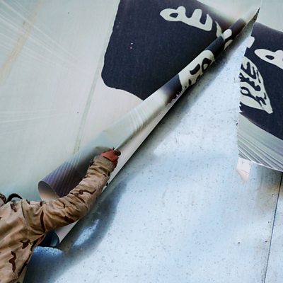 From courtrooms and prisons to rehab centres and martial arts training. We look to Europe, Iraq, Central Asia and Saudi Arabia to investigate how they are dealing with Islamic State militants. The defeat of Islamic State in Iraq and Syria has raised a new, global challenge. While Iraq is funnelling huge numbers of Islamic State suspects through its courts, thousands of foreign fighters are returning to their home countries. What is happening to former IS fighters? (Photo: A man takes down a poster of the IS militant group's flag. Credit: Getty Images)