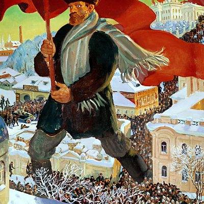 The Russian Revolution of 1917 led not just to huge political and social change, but to a new artistic freedom. Russian avant-garde artists like Malevich, Kandinsky and Chagall flourished in the immediate aftermath of the revolution. One of their greatest supporters was art curator Nikolai Punin. Louise Hidalgo has been talking to Punin's granddaughter, Anna Kaminskaia, about how that freedom was gradually replaced with censorship and repression, and her grandfather ended his life in the Gulag. Picture: 1920 painting by Boris Mikhailovich Kustodiev (1878-1927), Bolshevik (oil on canvas), Tretyakov Gallery, Moscow, Russia