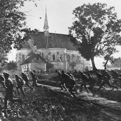 Russia's disastrous war on the Eastern Front became a catalyst for revolution at home. In 1914, Russia went to war against Germany and the Austro-Hungarian empire. But Russia was unprepared for a conflict on such a scale. Millions were killed or wounded at the front. There were chronic shortages at home. Popular anger led to the fall of the Tsar and the start of the Russian revolution. Using archive recordings we tell the story of the war in the East. Photo: Russian soldiers flee through a village after a provocateur announced that the German cavalry had broken through circa 1916. (Photo by Hulton Archive/Getty Images)