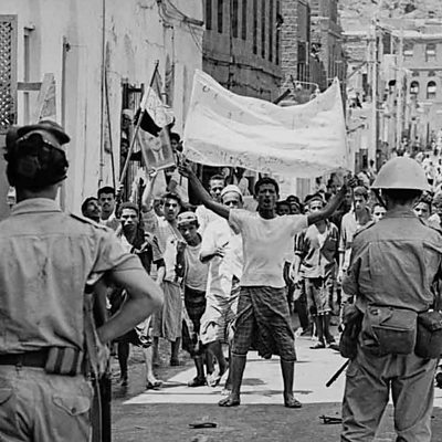 In 1967 the British withdrawal from their colony of Aden led to the creation of the People's Republic of South Yemen. Britain had colonised the port city in 1839. Aden had been at the centre of the British colonial trading system and had been one of the busiest ports in the world. The handover has been described as one of the most chaotic in British colonial history. Farhana Haider has been speaking to the former British diplomat, Oliver Miles and to Ghassan Luqman who says the scars of Britain's quick withdrawal are still being felt in Yemen today. Photo: Aden 1967 Copyright: Alamy.