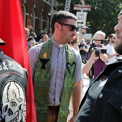 Charlottesville in the American state of Virginia, was thrust into the limelight in the late summer when white supremacists groups violently clashed with counter demonstrators The city is Jane Little’s home town, and she will find that even before the events of the summer, religious leaders had been long been mobilizing against alt-right groups following two previous demonstrations. The tactics they are taught mirror those used by leaders of the Civil Rights movement of the 1960’s. As the violence escalated in Charlottesville, clergy were called upon for help, in some cases even before the Police could arrive, often running straight into trouble. Sometimes a clergy presence would calm a situation but Jane will meet clergy who on that day suffered violent attacks. She meets Rev. Osagyefo Sekou, pastor, activist, singer and the spiritual head of a movement of non-violent resistance, which he hopes to spread across the United States Can a faith response though in reaction to the threat of violence between such polarised groups be enough? Presenter: Jane Little Production: Jane Little and Louise Clarke-Rowbotham