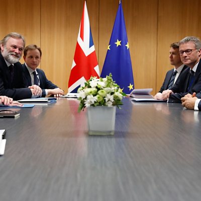 A simple guide to the key outstanding points that the UK and EU must agree in order to reach a deal on Britain's exit, and what the most likely outcomes will be. Presenter Ed Butler gets the views of Brexit sceptic and economics professor Jonathan Portes of Kings College London, and Brexit-supporter Victoria Hewson, counsel to the special trade commission at the Legatum Institute in London. (Picture: Britain's Prime Minister Theresa May (L) and European Council President Donald Tusk (R) attend a bilateral meeting at the European Council headquarters in Brussels; Credit: Christian Hartmann/AFP/Getty Images)
